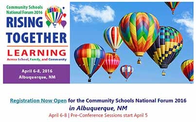 All public school supporters are welcome to register for the 2016 Coalition for Community Schools National Forum hosted in Albuquerque from April 6-8, 2016.
