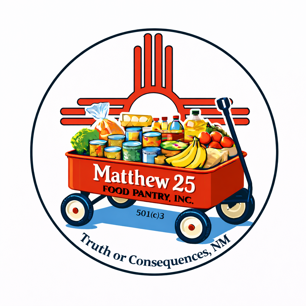 Matthew 25 Food Pantry is a non-profit, equal opportunity, all volunteer organization, established to help eradicate hunger in Sierra County, NM.