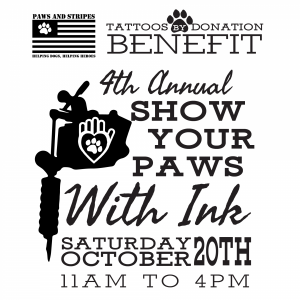 Paws and Stripes is a non-profit based out of Albuquerque that is recognized nationally for their work. The organization chooses and pairs rescued shelter dogs with veterans that have been diagnosed with post-traumatic stress disorder and/or traumatic brain injury and trains them to become service dogs at no cost to the veteran. On October 20th, 2018 from 11am to 4pm, Tattoo artists and studios throughout the greater Albuquerque area will be participating in the 4th Annual “Show Your Paws With Ink” fundraising event benefitting Paws and Stripes. Participating tattoo artists and studios have created eight to ten “signature” pieces of tattoo flash art for people to choose from based on the mission of Paws and Stripes. We need volunteers to keep track of the list of people coming in and wanting a tattoo, and also keeping track of money coming in too.